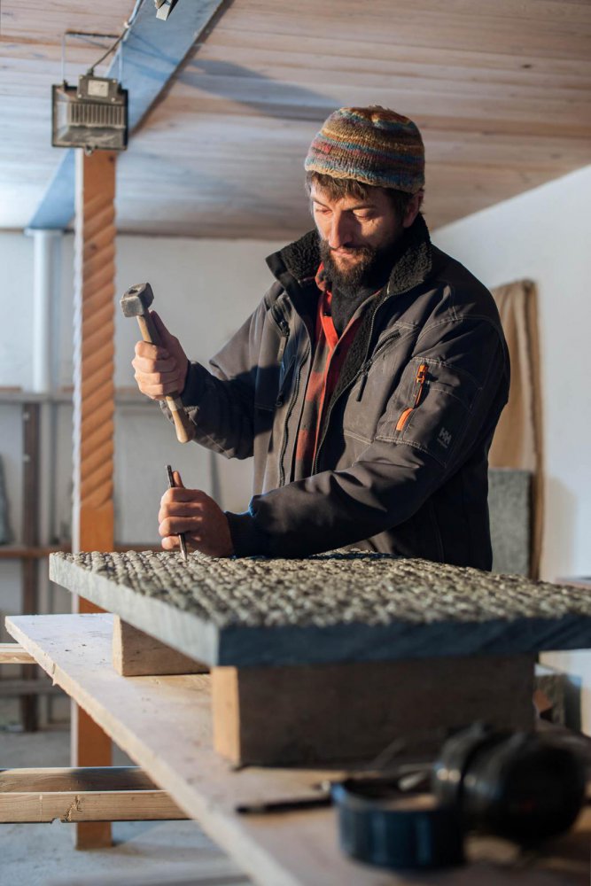 For the MONOLIT residential estate, the Graubünden native and stone sculptor, Linard Nicolay, created a relief for every house, each hewn from a different rock-type from this very region, ranging from Granit, Gneis and Quarzite. In this way, these works are connected with other regions of Graubünden.