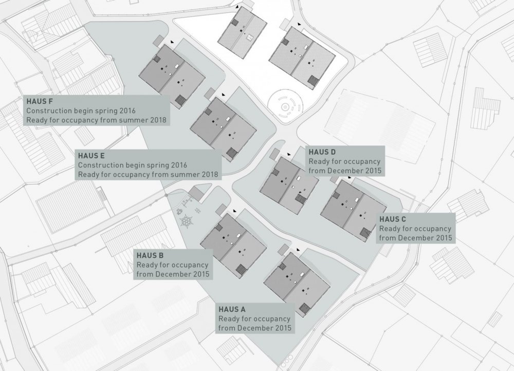 From the underground garage, one gains access by lift directly to the apartments. A playground and communal area are also extant. The settlement opens fan-like toward the valley and enables each individual building an optimal orientation to the sun as well as the panorama of the valley of the Inn.